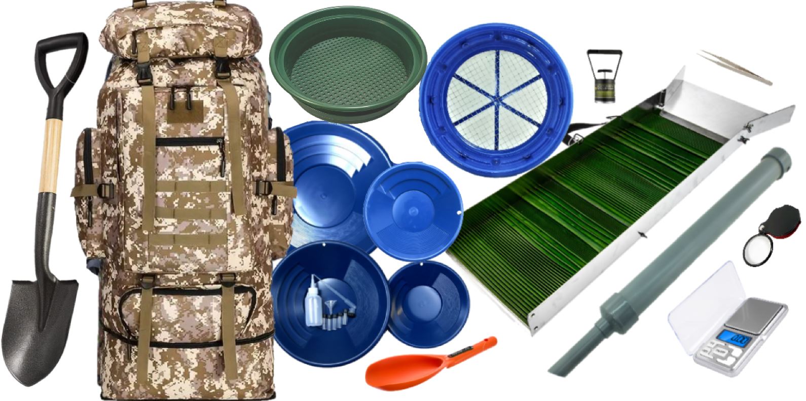 Das Set beinhaltet eine vollständige Ausrüstung für die Goldsuche und das Clean Up.
